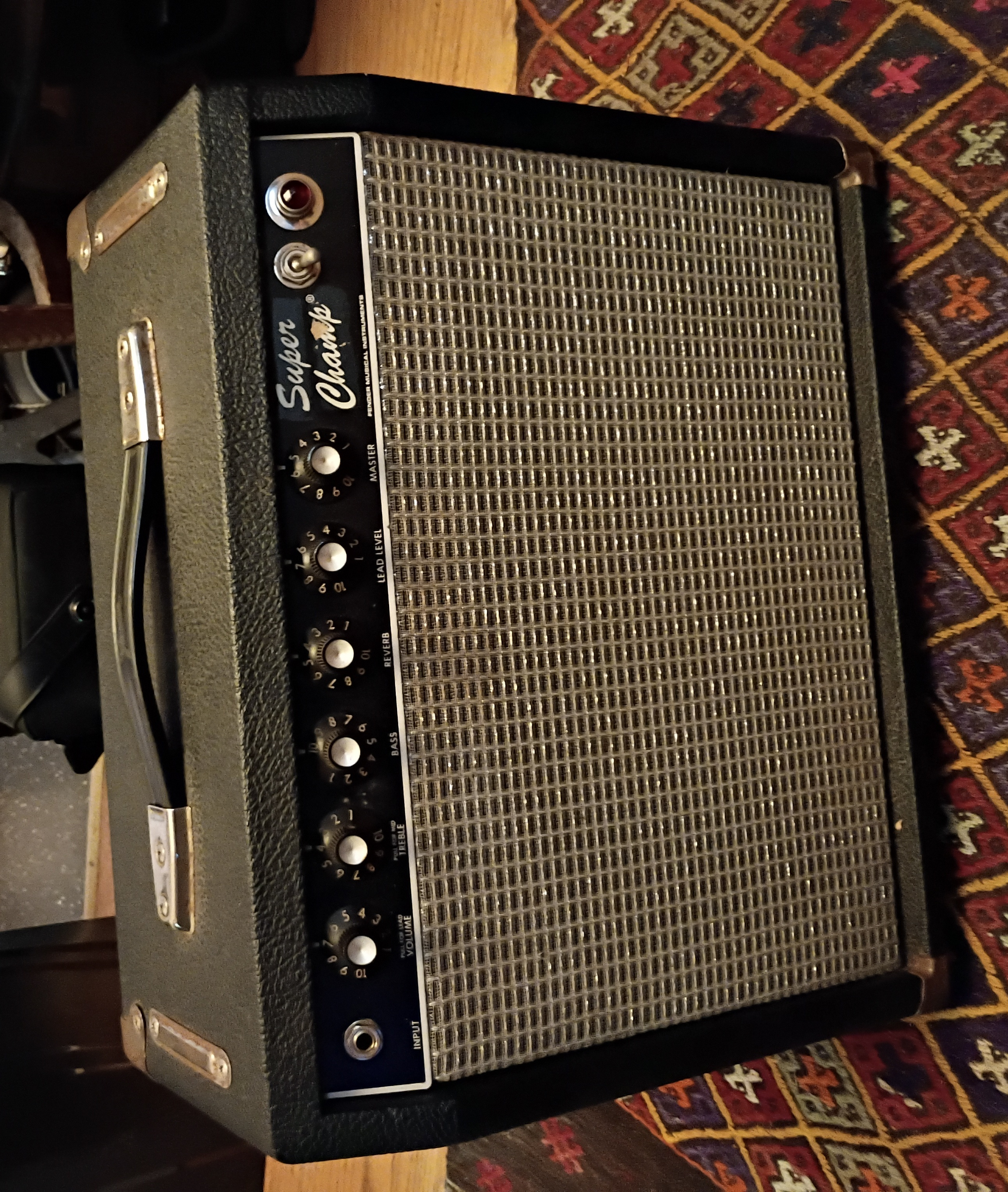From the Rivera Era, here's a well cared-for classic Fender Super Champ. Weber speaker, footswitch,