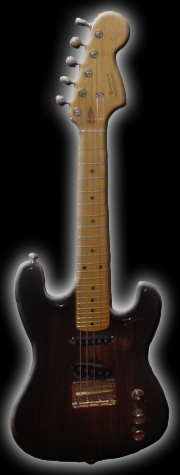 pickups; and 22-fret maple neck with skunk stripe. On the right, an