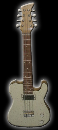 mandolin with a solid ash body and butternut top; handwound single-coil
