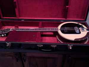 Here's an interesting electric octave mandolin that looks more like a banjo, with lots of nice woodworking details. On other details I'm regrettably short, except that I think the builder resides somewhere near Nashville.