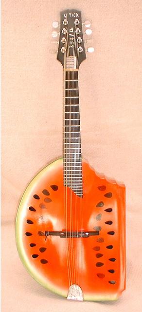 On the right: the Bussmann "U-Pick" acoustic/electric "melondolin," of