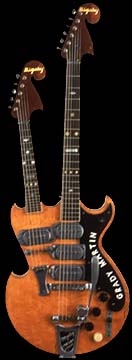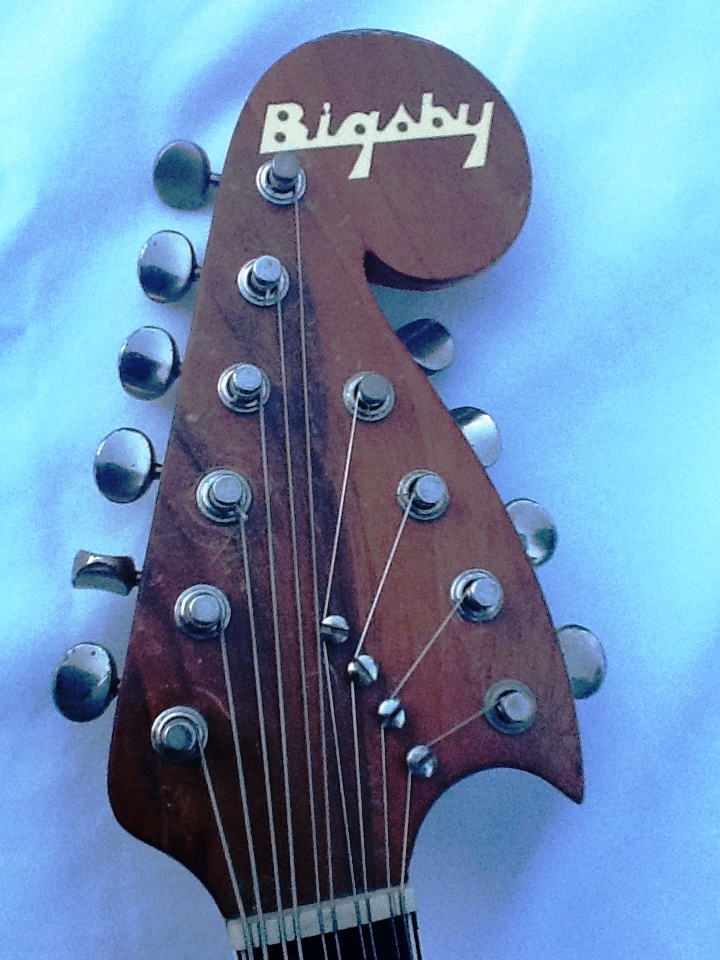Seven Bigsby e-mandos are known to exist: These instruments are semi-hollow rather than completely solid; they have a neck-through design with hollow wings. Bigsby also made three doubleneck guitars with mandolin necks, for George Johnston (1956), J.B. Thomas (1956), and Grady Martin (1952), pictured above. |