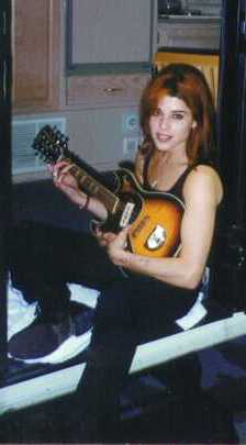 it's Hollywood star Neve Campbell with a left-handed Kent electric!
