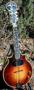 built for Ohio musician Jag Yggdrasil. Above right is Doug's Les Paul–style 8-string—a bit of a departure from his standard design. He made two of these. Here's a glowing customer review of one of Doug's mandolins.     |