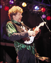instrument, "Hoss," is a 1930s Gibson F5, but he also plays a resophonic